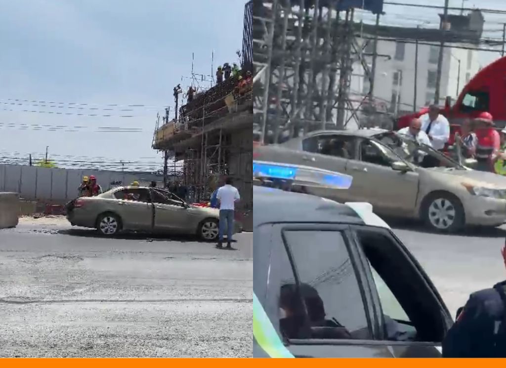 Cae Bloque de concreto sobre auto en obra del Metro en Monterrey