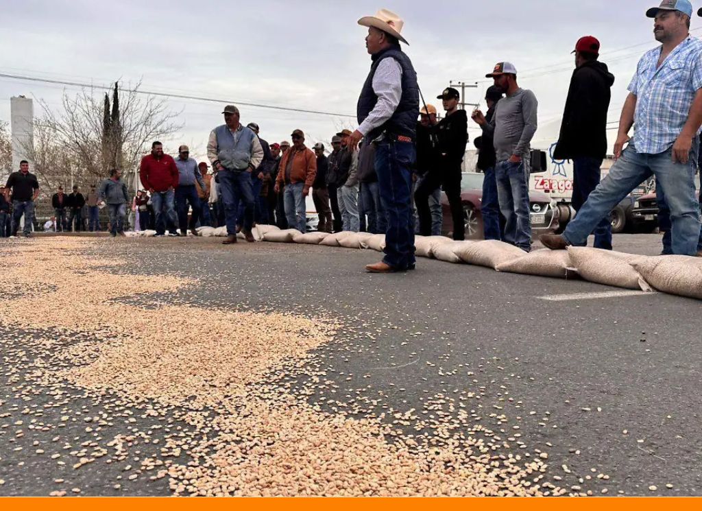 Chihuahua. — Integrantes de la Unión Campesina Democrática (UCD) realizaron una protesta frente a bodegas de Segalmex —actualmente llamadas Alimentación para el Bienestar— en la capital del estado de Chihuahua, donde arrojaron frijol sobre el asfalto y bloquearon el paso de vehículos para exigir la compra de 3 mil toneladas adicionales.