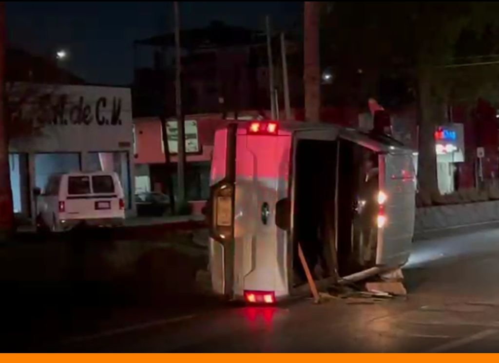 Tras el impacto, la camioneta se descontroló, se proyectó hacia el camellón central, derribó una luminaria y terminó volcada sobre uno de sus costados, obstruyendo los carriles derechos con dirección al oriente.
