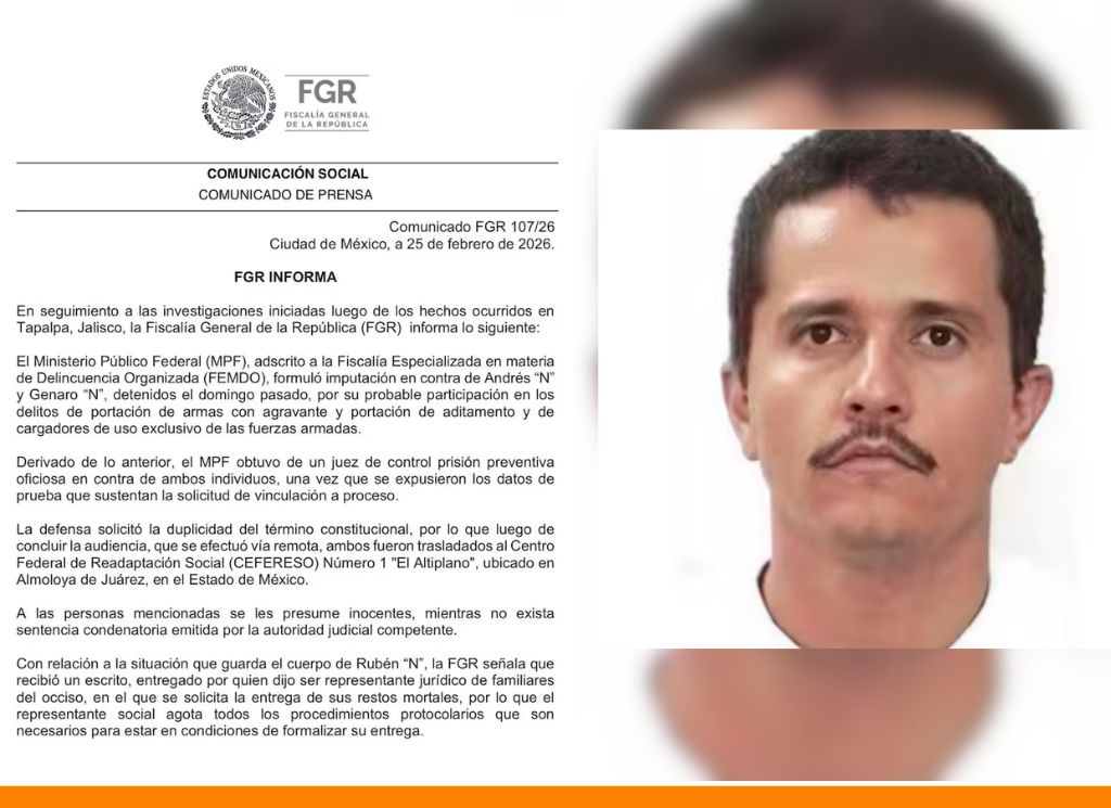 Ciudad de México.— La Fiscalía General de la República (FGR) informó que recibió una solicitud formal para la entrega del cuerpo de Nemesio Oseguera Cervantes, alias “El Mencho”, quien fue abatido el pasado 22 de febrero en Jalisco.