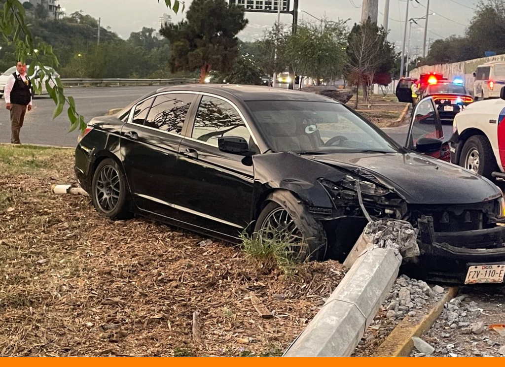 Monterrey.– Un joven impacto su automóvil contra un poste sobre el bulevar Antonio L. Rodríguez, en Monterrey, la mañana de este martes.