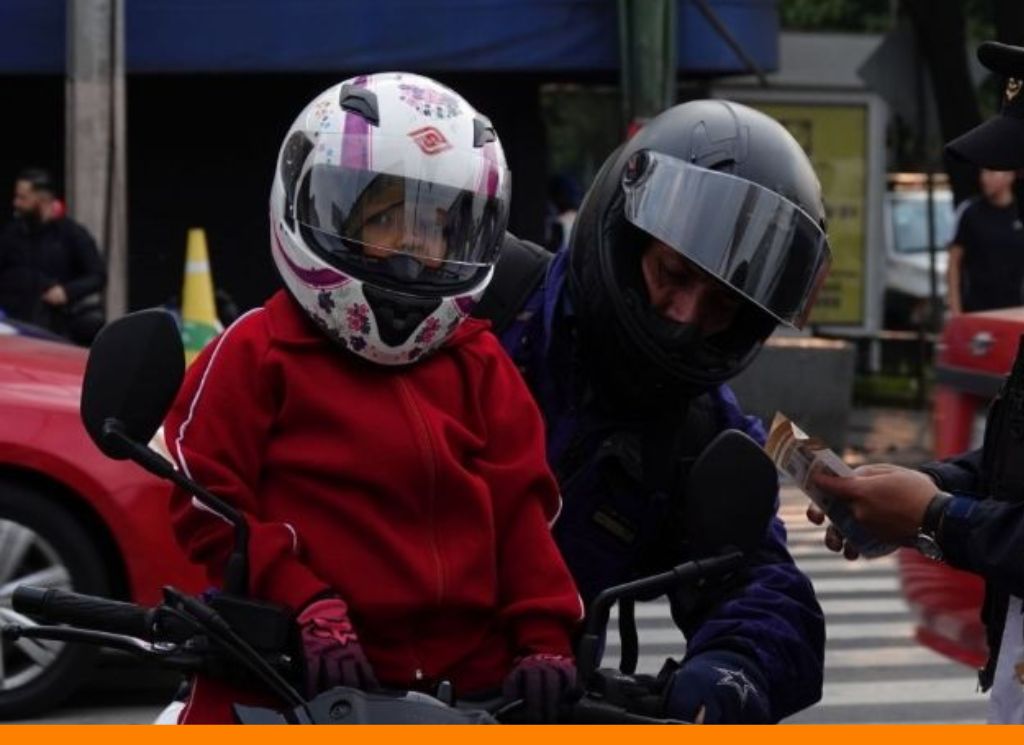Ciudad de México. – Las autoridades de la Ciudad de México aplicaran nuevas restricciones para transportar menores de edad como pasajeros en motocicletas. Esta es una práctica común en diversas zonas de la capital, donde se observa a padres y madres llevar a sus hijos sin casco y hacinados sobre una motocicleta. Por ello, es importante conocer las sanciones que puedes recibir si eres detenido por un oficial de tránsito.
