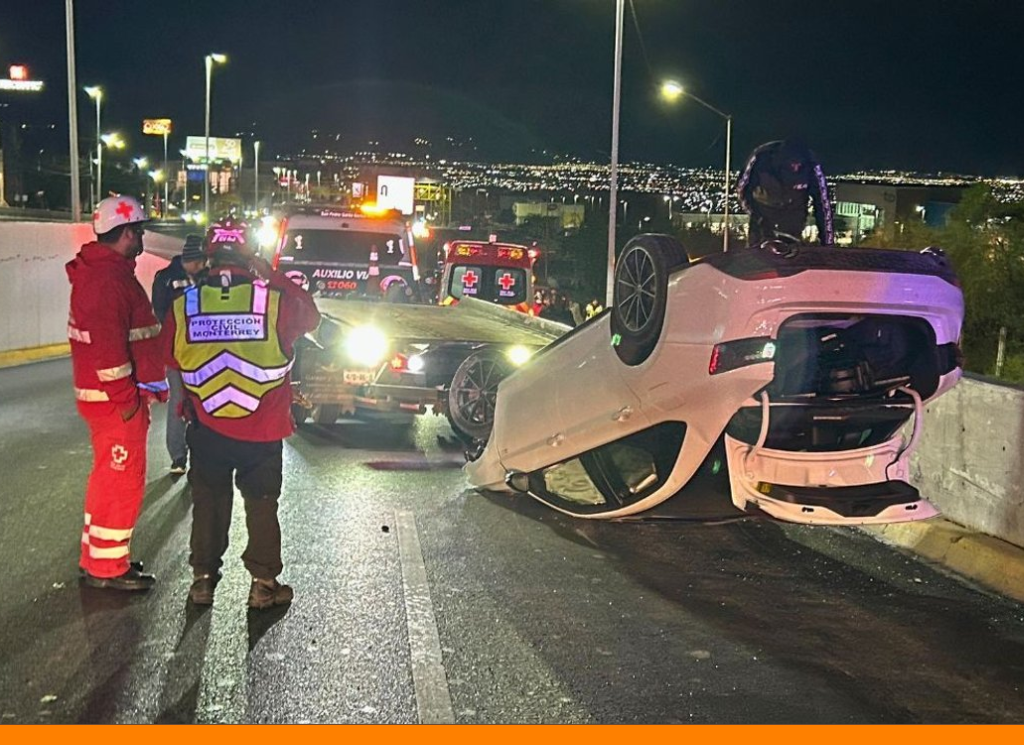 Monterrey, Nuevo León . – Un joven de 17 años volcó el automóvil que conducía mientras circulaba a presunto exceso de velocidad sobre la avenida Paseo de los Leones, en el municipio de Monterrey.