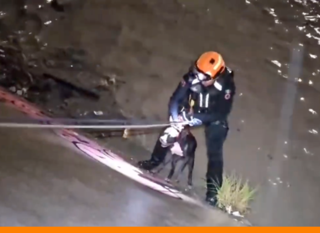 San Pedro Garza García. – Elementos de Protección Civil lograron rescatar a dos perritos que estuvieron a punto de morir ahogados durante las intensas lluvias registradas la noche del 1 de septiembre en la colonia El Obispo, en San Pedro Garza García, Nuevo León.