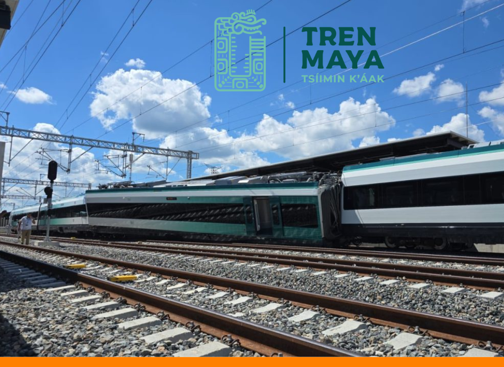 Izamal, Yucatán. – Un vagón del Tren Maya se descarriló este martes 19 de agosto al salir de la estación de Izamal, mientras realizaba la ruta Mérida–Cancún.