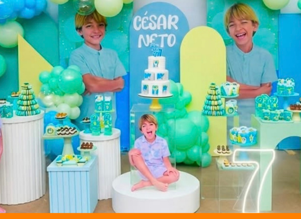 La fiesta estuvo completamente personalizada: los invitados fueron recibidos por figuras tamaño real del niño colocadas en la entrada; los recuerdos incluían su foto; los bocadillos estaban decorados con su imagen; y un enorme tótem con su rostro dominaba la sala. Todo el evento giraba alrededor de celebrar quién es César.