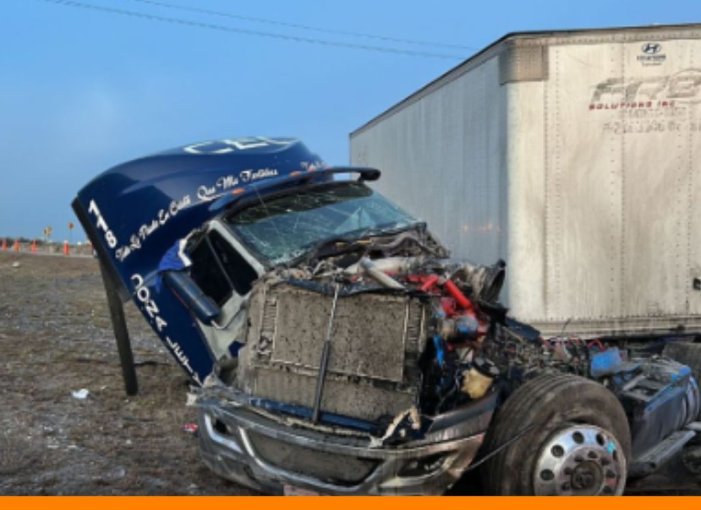 Como consecuencia del impacto, la cabina del tráiler se desprendió junto con el motor, mientras que parte de la caja quedó sobre el acotamiento, invadiendo parcialmente uno de los carriles de circulación.